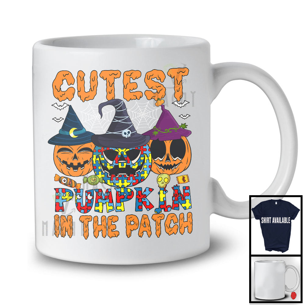 Cutest Pumpkin In The Patch, Humorous Halloween Three Puzzle Pumpkins, Autism Awareness T-Shirt