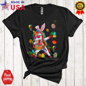 Dabbing Bunny Unicorn With Easter Egg Basket Cute Funny Easter Egg Hunt Autism Awareness Puzzle T-Shirt