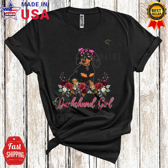 Dachshund Girl Cute Cool Mother's Day Flowers Floral Matching Mom Women Dachshund Owner Lover T-Shirt
