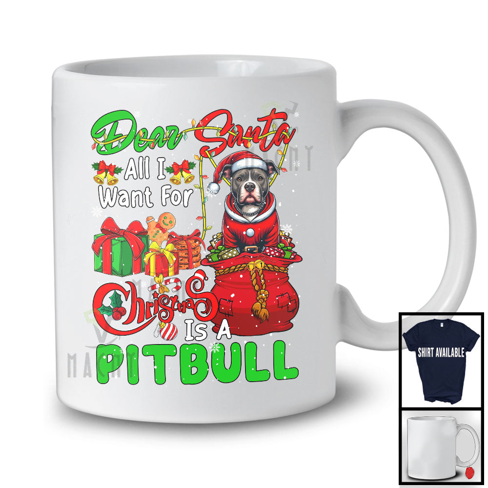 • Dear Santa All I Want For Christmas Is A Pit Bull; Joyful X-mas Lights Snowing; Family T-Shirt. This cotton t-shirt is a durable staple product with a classic fit. One of the most popular items, it has a relaxed style made for everyday and casual wear.
