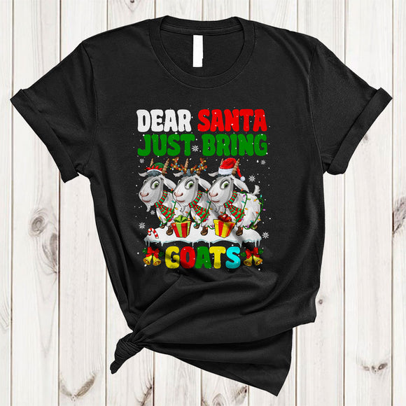 Dear Santa Just Bring Goats, Lovely Three Goat Farmer, X-mas Farm Animal Lover T-Shirt