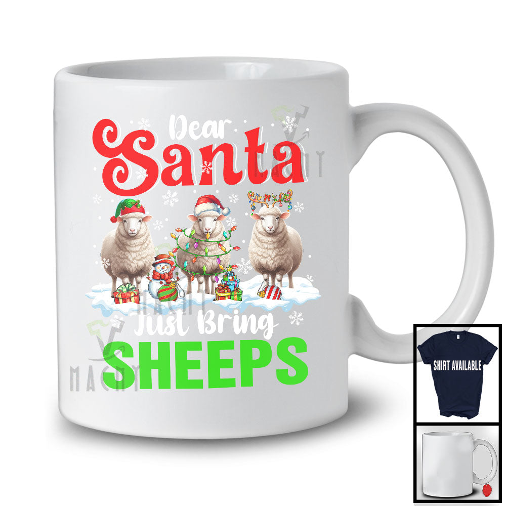 Dear Santa Just Bring Sheeps; Awesome Christmas Lights Snowing Farm Animal; X-mas Farmer T-Shirt