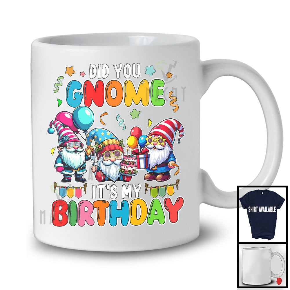Did You Gnome It's My Birthday, Joyful Birthday Three Gnomes Gnomies, Matching Family Group T-Shirt. This cotton t-shirt is a durable staple product with a classic fit. One of the most popular items, it has a relaxed style made for everyday and casual wear.