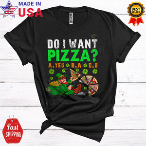 • Do I Want Pizza Funny Cool St. Patrick's Day Leprechaun Eating Pizza Food Shamrock Lover T-Shirt