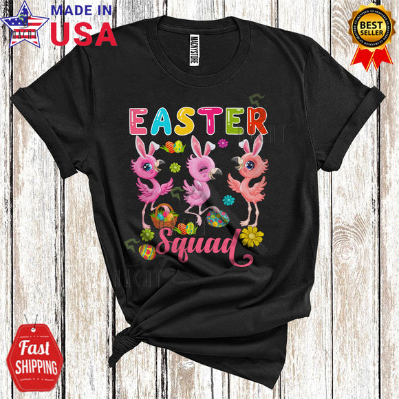Easter Squad Cute Happy Easter Day Flowers Three Bunny Flamingos Hunting Easter Egg Group T-Shirt