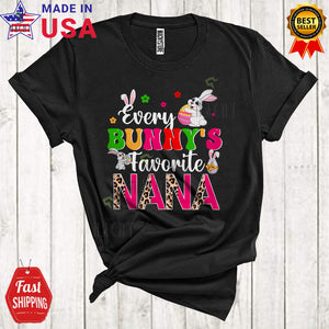 Every Bunny's Favorite Nana Funny Happy Easter Day Matching Family Leopard Bunny T-Shirt
