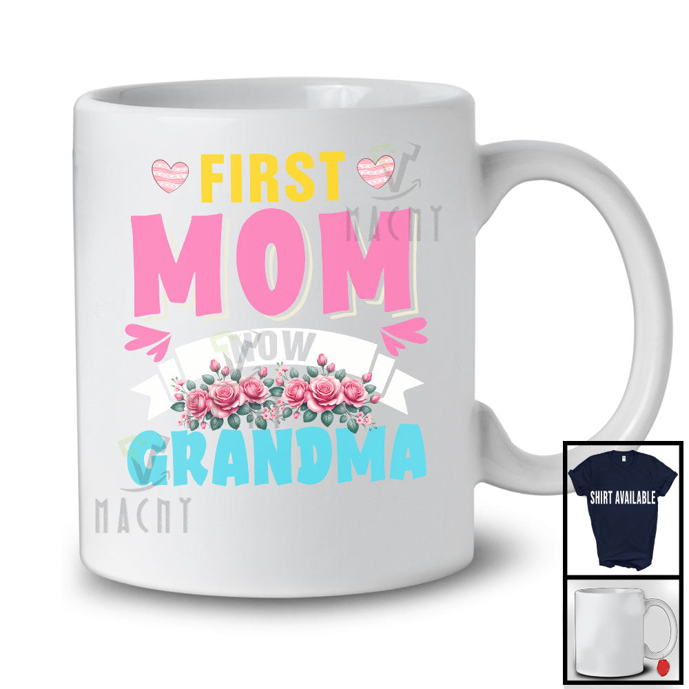 This First Mom Now Grandma, Amazing Mother's Day Promoted To Grandma Pregnancy, Flowers Family T-Shirt is great idea gift for your family, friends in this birthday, christmas, mother's day, father's day, patrick's day or any holiday.