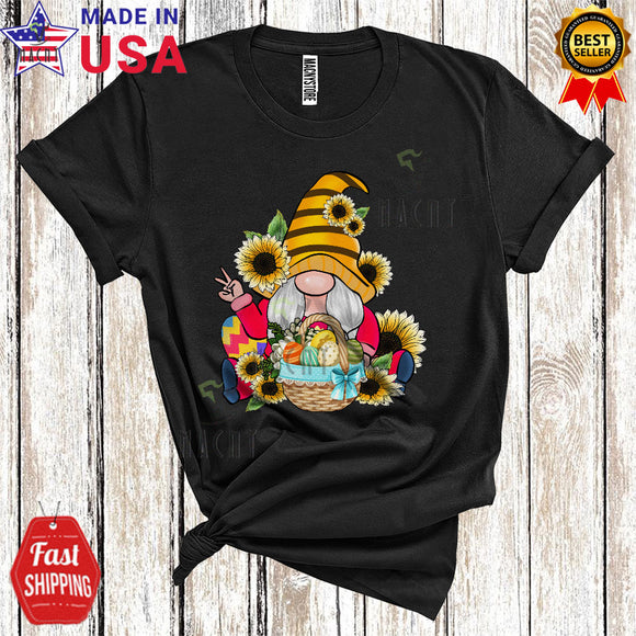 Funny Sunflowers Gnomes Holding Easter Eggs Basket Cool Funny Easter Egg Hunt Bunny T-Shirt