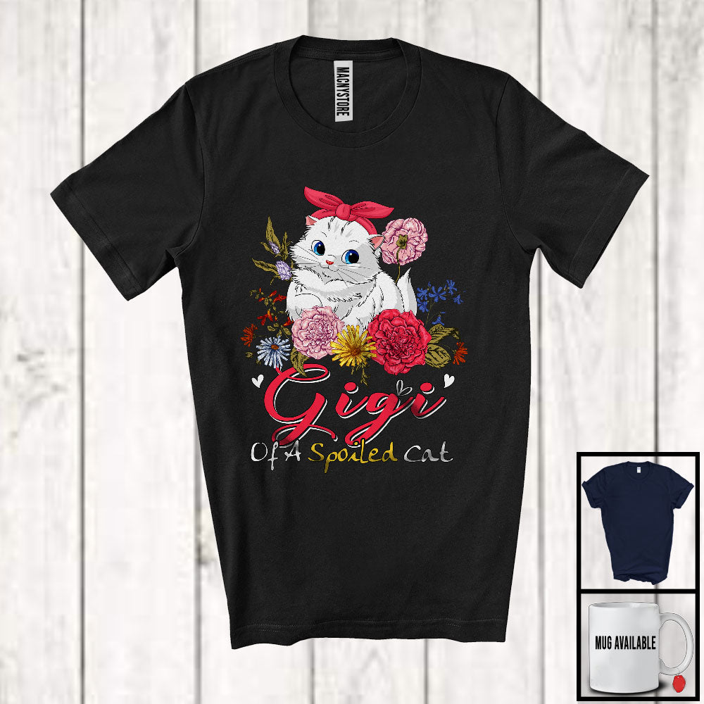 Gigi Of A Spoiled Cat, Lovely Mother's Day Flowers Kitten Owner Lover, Matching Family Group T-Shirt. This cotton t-shirt is a durable staple product with a classic fit. One of the most popular items, it has a relaxed style made for everyday and casual wear.