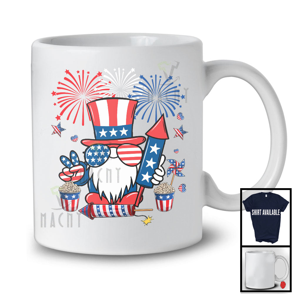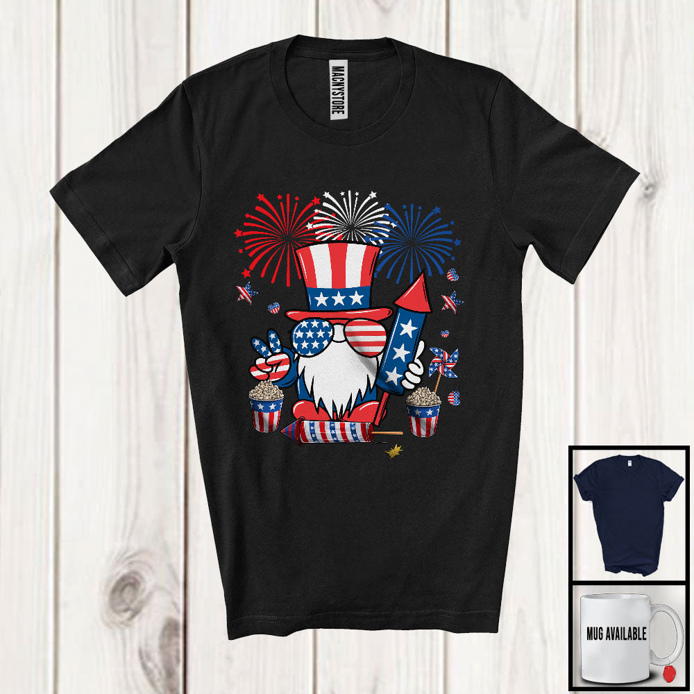 Gnome With American Flag Sunglasses Firecracker, Proud 4th Of July Fireworks Gnomes, Patriotic T-Shirt
