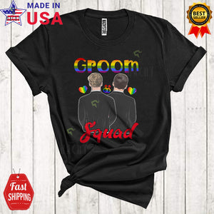 Groom Squad Cool Cute LGBTQ Pride Wedding Bachelorette Matching Lesbian Gay Friends Family Group T-Shirt