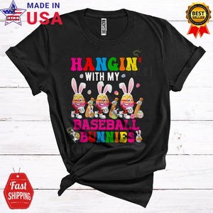 Hangin' With My Baseball Bunnies Cute Cool Easter Bunny Egg Sport Player Coach Lover T-Shirt