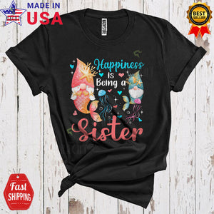 Happiness Is Being A Sister Cute Funny Mother's Day Family Gnome Mermaid Lover T-Shirt