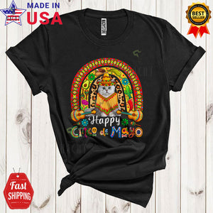 Happy Cinco De Mayo Cool Cute Rainbow Mexican Sombrero British Longhair Cat Lover T-Shirt