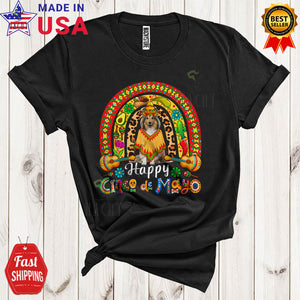 Happy Cinco De Mayo Cool Cute Rainbow Mexican Sombrero Shetland Sheepdog Lover T-Shirt