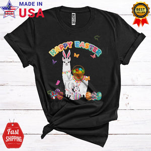 • Happy Easter Cool Cute Easter Day Bunny Llama With Easter Egg Basket Llama Lover T-Shirt