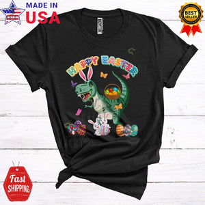 Happy Easter Cool Cute Easter Day Bunny T-Rex With Easter Egg Basket Dinosaur Lover T-Shirt