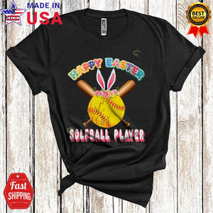 Happy Easter Softball Player Cute Cool Easter Day Bunny Ears Sport Player Team Lover T-Shirt