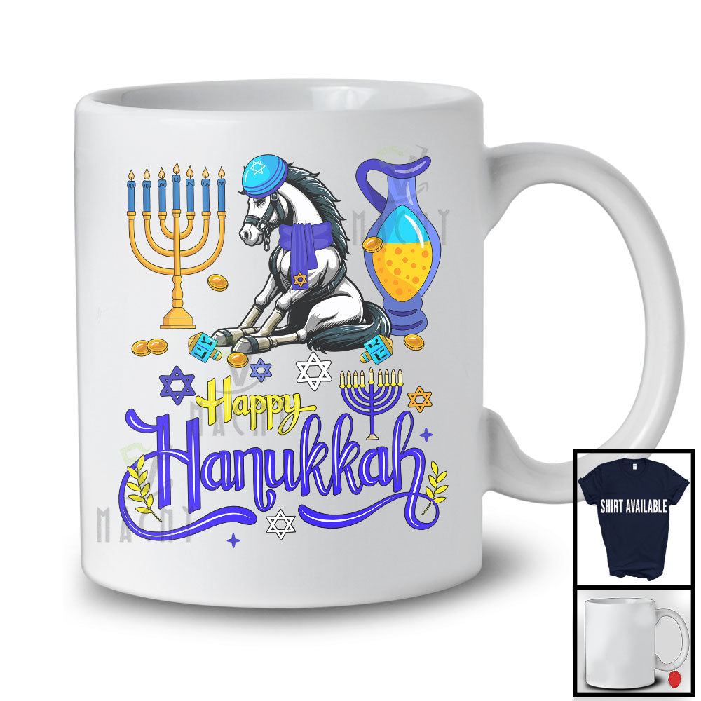 Happy Hanukkah; Happy Chanukah Lovely Horse With Menorah; Farmer Family Group T-Shirt
