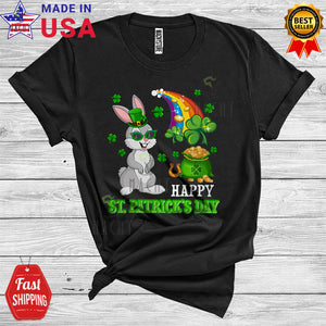 Happy St. Patrick's Day Cool Cute St. Patrick's Day Leprechaun Rabbit Shamrock Rainbow Animal Lover T-Shirt