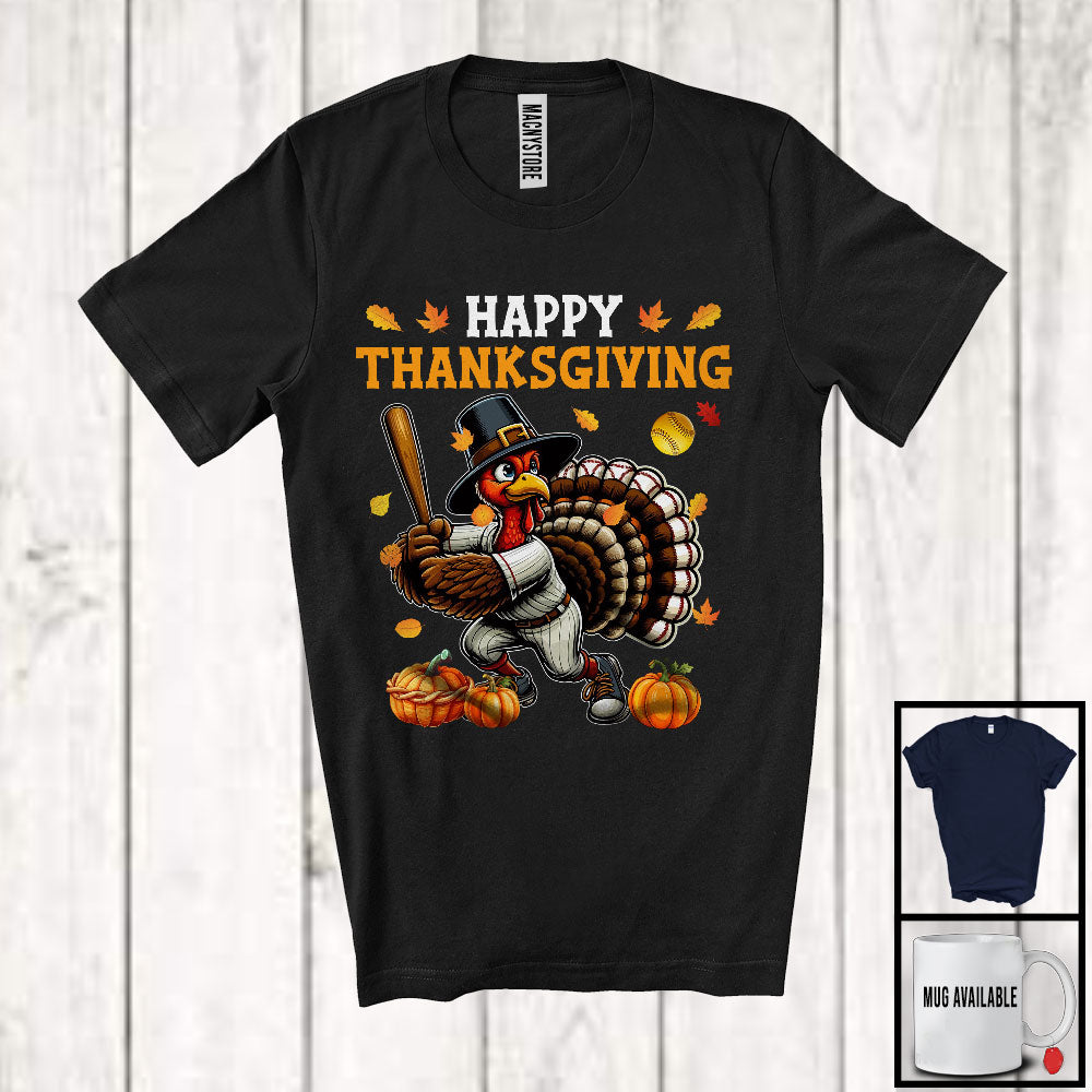 Happy Thanksgiving; Awesome Thanksgiving Autumn Fall Leaves Turkey; Softball Player T-Shirt