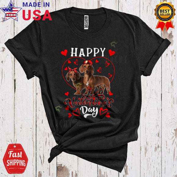 Happy Valentine's Day Cute Cool Valentine Heart Shape Plaid Couple Dachshund Dogs Lover T-Shirt