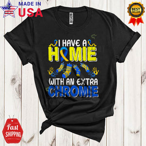 The I Have A Homie With An Extra Chromie Cool Proud Down Syndrome Awareness Ribbon Socks T-Shirt destined to impress, and priced at only $15.95, for a limited time.