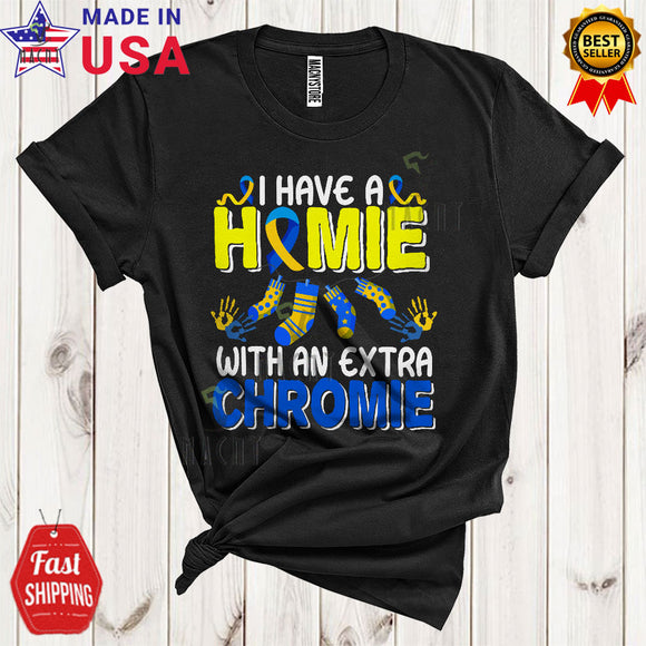 I Have A Homie With An Extra Chromie Cool Proud Down Syndrome Awareness Ribbon Socks T-Shirt