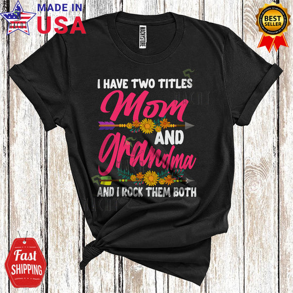 I Have Two Titles Mom And Grandma I Rock Them Both Cool Funny Mother's Day Flowers Mom Family T-Shirt
