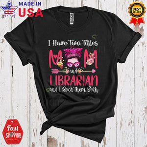 I Have Two Titles Mom And Librarian Cool Proud Mother's Day Bun Hair Woman Face Family T-Shirt