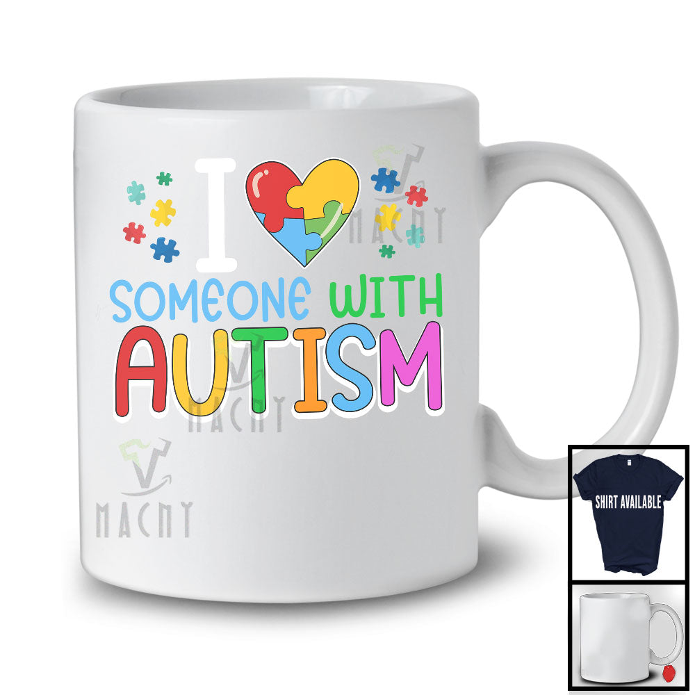 • I Love Someone With Autism, Lovely Autism Awareness Heart Shape, Puzzle Family Group T-Shirt. This cotton t-shirt is a durable staple product with a classic fit. One of the most popular items, it has a relaxed style made for everyday and casual wear.