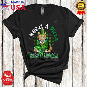 I Need A Pizza Right Meow Cute Funny St. Patrick's Day Leprechaun Cat Eating Pizza Food Cat Lover T-Shirt