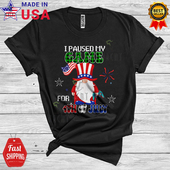 I Paused My Game For 4th Of July Cute Cool Independence Day Firework Plaid Gnomes Gaming Gamer T-Shirt