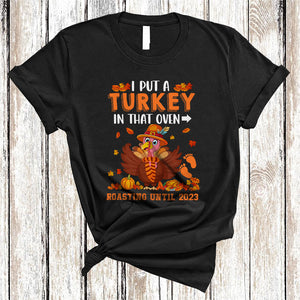 I Put A Turkey In That Oven 2023, Lovely Cool Fall Leaf Turkey, Thanksgiving Pregnancy Fall T-Shirt