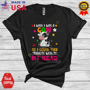 I Wish I Was A Cow So I Could Stab Idiots With My Head Cool Funny Cow Farm Farmer T-Shirt