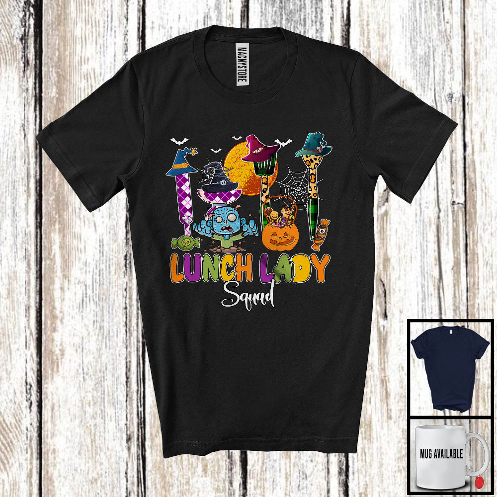 • iGHAPbg/s1Lunch Lady Squad, Horror Halloween Costume Plaid Lunch Lady Tools Witch, Matching Family Group T-Shirt. This cotton t-shirt is a durable staple product with a classic fit. One of the most popular items, it has a relaxed style made for everyday and casual wear.