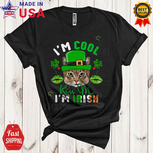 I'm Cool Kiss Me I'm Irish Funny Happy St. Patrick's Day Irish Kiss Lips Leprechaun Cat Owner Lover T-Shirt