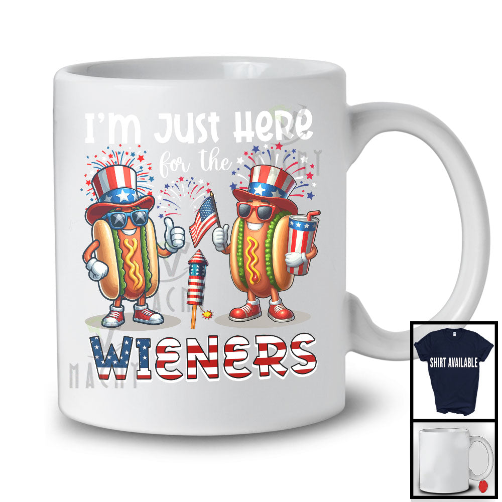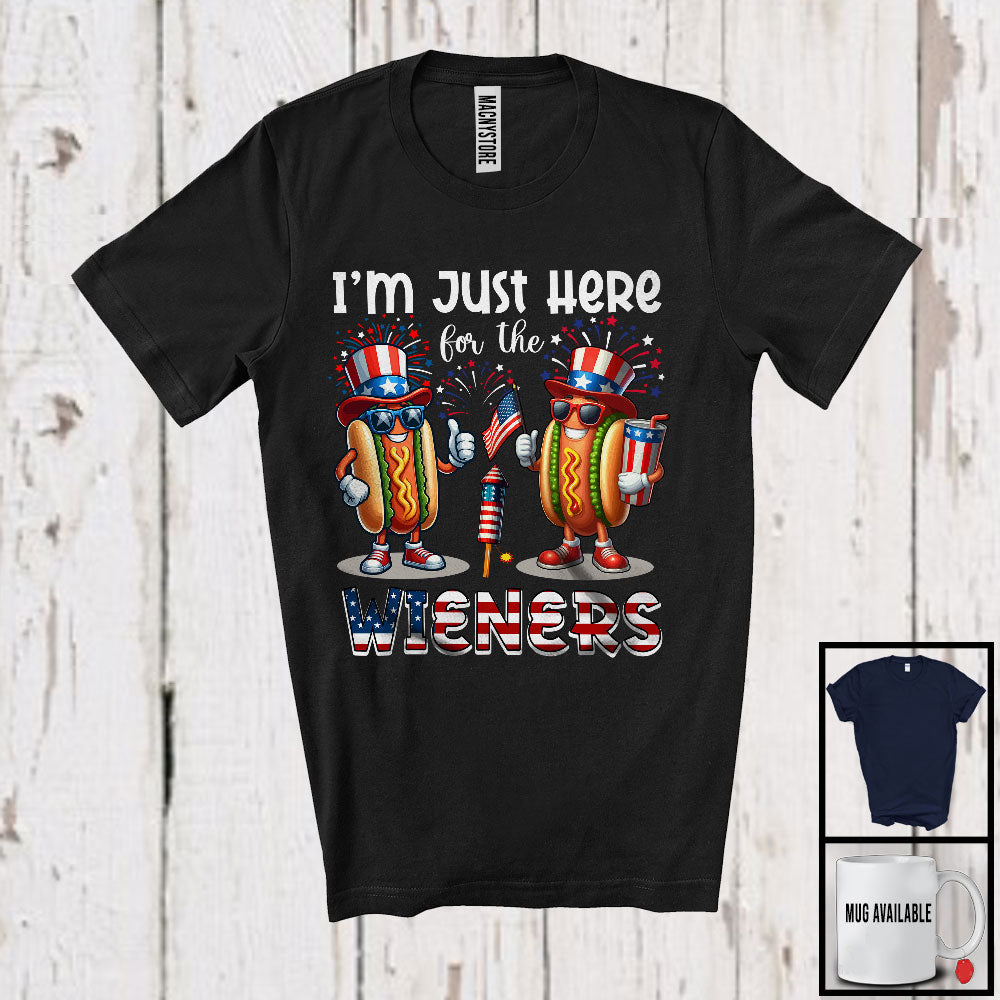 I'm Just Here For The Wieners, Humorous 4th Of July Hot Dog Sausage, Patriotic Fireworks T-Shirt