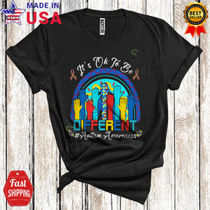 It's Ok To Be Different Autism Awareness Cool Cute Autism Puzzle Hands Rainbow Lover T-Shirt