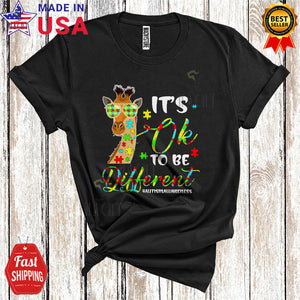 It's Ok To Be Different Cool Cute Autism Awareness Puzzle Piece Giraffe Animal Lover T-Shirt