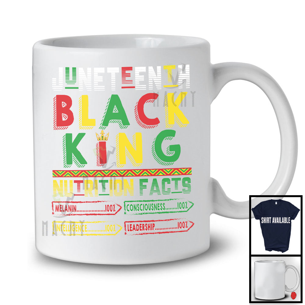 Juneteenth Black King Nutrition Facts, Proud Black Melanin African, Father's Day Afro Family T-Shirt. This cotton t-shirt is a durable staple product with a classic fit. One of the most popular items, it has a relaxed style made for everyday and casual wear.