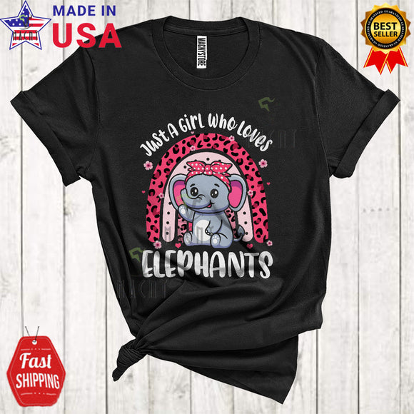 Just A Girl Who Loves Elephants Cute Cool Flowers Leopard Rainbow Matching Animal Lover T-Shirt
