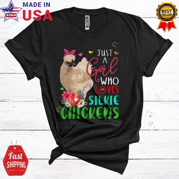 Just A Girl Who Loves Silkie Chickens Cool Funny Chicken Flowers Farm Animal Farmer T-Shirt