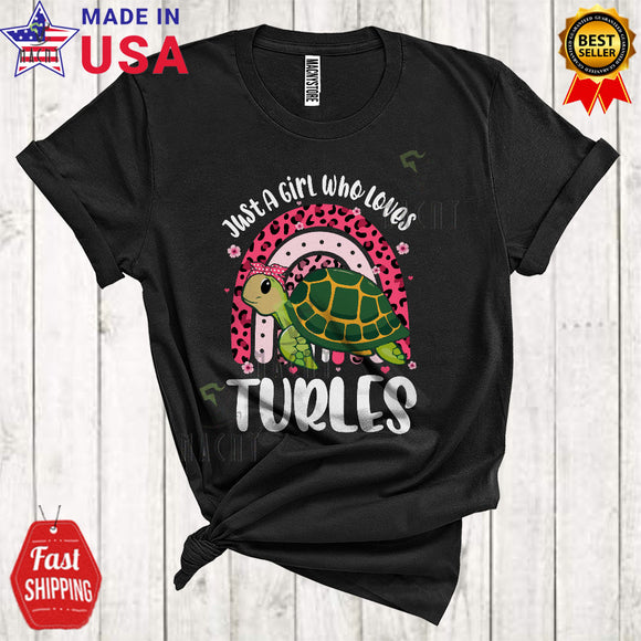 Just A Girl Who Loves Turtles Cute Cool Flowers Leopard Rainbow Matching Animal Lover T-Shirt