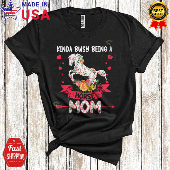 Kinda Busy Being A Horse Mom Funny Cute Mother's Day Family Floral Animal Farmer T-Shirt