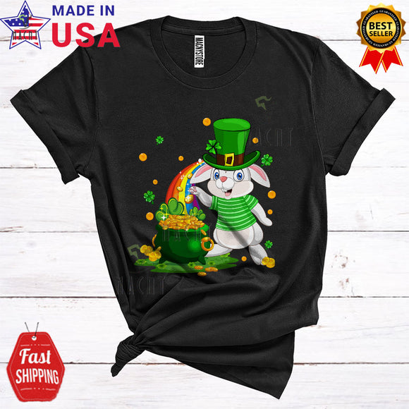 Leprechaun Bunny With Pot Of Gold Coins Cool Cute St. Patrick's Day Bunny Animal Rainbow Lover T-Shirt