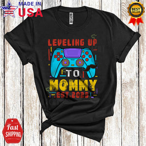 Leveling Up To Mommy EST 2023 Cool Happy Mother's Day Pregnancy Gamer Gaming T-Shirt