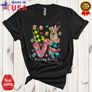 LOVE Happy Easter Cool Cute Easter Eggs Hunt Flowers Plaid Bunny Corgi Dog Lover T-Shirt