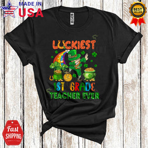 Luckiest 1st Grade Teacher Ever Cool Funny St. Patrick's Day Teacher Dabbing Leprechaun Lover T-Shirt
