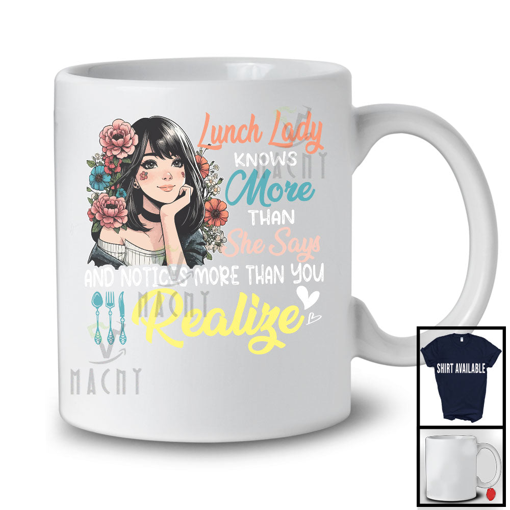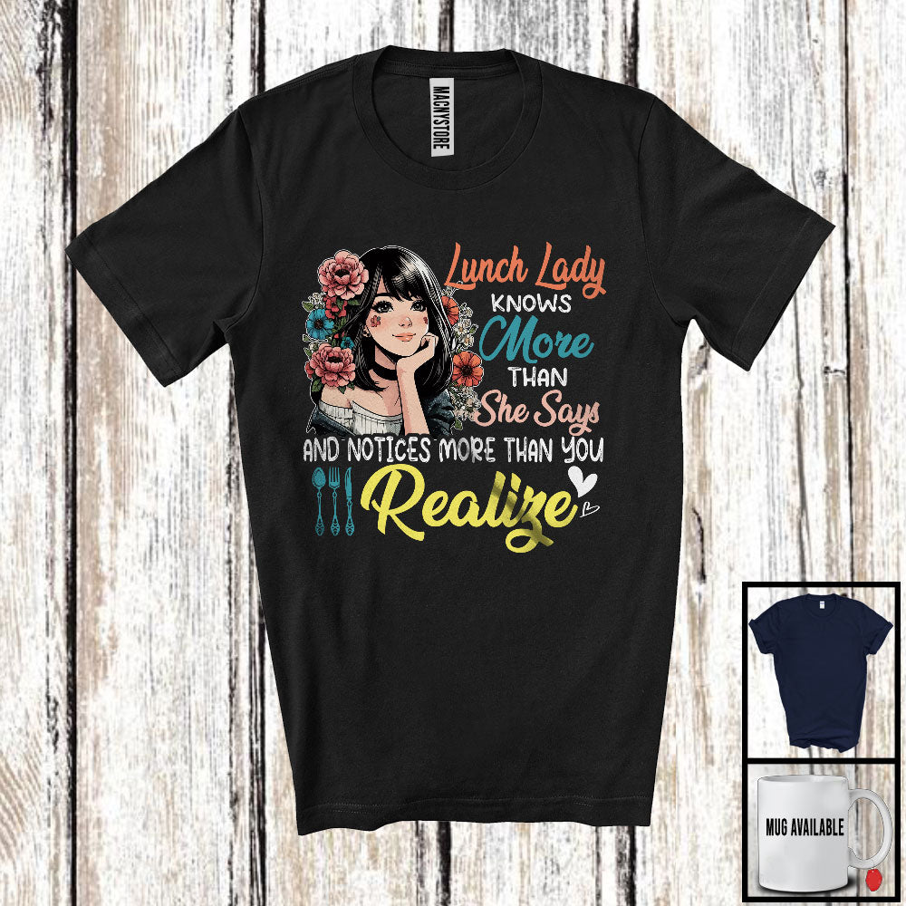 new MacnyStore - Lunch Lady Knows More Than She Says, Lovely Flowers Girls Women, Matching Lunch Lady Group T-Shirt – Macnystore